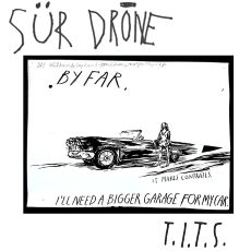 Sür Drone’s T.I.TS. (The Inimitable Trillion Stars) is an unusual, musical album full of lowbrow grit and high-concept levity. Pettibon supplied the graphics, wrote the lyrics, and performed lead vocals. Daniel wrote and produced the music, played guitar, and recorded it to 24-track analog tape. When indie legend Geza X first heard the results, he gasped “This is dynamite!!” and immediately signed them to his Geza X Records, quickly reeling in his longtime friend, Lisa Fancher of Frontier Records, to market and distribute the high-profile project.