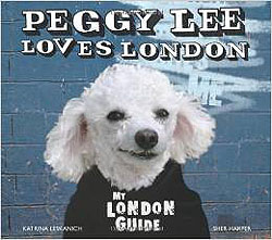 'Peggy Lee Loves London: My London Guide' is a cute and lovely guidebook to the fair city, starring a pet dog owned by 'Walking on Sunshine' singer, Katrina Leskanich (aka Katrina & The Waves). In this delightful book, Peggy Lee begins her journey in Soho, at The Toucan, an Irish bar where she finds a rather large Guinness - and sits down right atop it! You see, Peggy Lee isn't touring these places to simply eat, drink, pee and be merry. No, she is investigating, cataloging the sights that she's heard so much about, and along with a brief synopsis of each place, adds a colorful little evidence photo of her having been there alongside said noted entry.