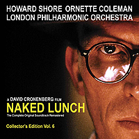Here on NAKED LUNCH: COLLECTOR'S EDITION VOL. 6, Howard Shore again masters the mood with this foray into the seamy underworld of William Burroughs. In this story about a place called Interzone, full of sinister centipedes and slimy "mugwumps," there is nothing better at giving listeners the creepy-crawlies than the depressing styles of what many could instantly identify as "beatnik" jazz.