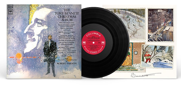 The new edition of Snowfall: The Tony Bennett Christmas Album includes a restoration of the original album art by illustrator Bob Peak and a vinyl sleeve featuring original holiday paintings by Tony Bennett.