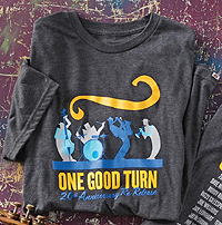To commemorate the 20th Anniversary Re-Release of One Good Turn on CD, the Jazz Foundation of America worked with 32 Bar Blues to design this jumpin’ jazz T-shirt!