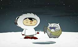 Like all good epic stories this one starts with introduction of the characters where you learn that One eskimO and his soul mate Little Feather have been entwined since birth. As they grow older they fall in love and have a happy life in there igloo. This when the audience is introduced the to the evil character of the story Mr. Top Hot, a short round evil little man that sits high on his thrown in a cave watching over the happy couple (That’s what evil people do in their spare time).