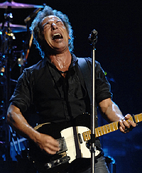 At 58, Springsteen is more urgent than five years ago with the E Streeters and as refreshed as I've ever seen him. Able to balance his various political messages about the deception and despair brought by the Bush administration, The Boss is quite adept at conducting the band with the slightest flick of his Fender Telecaster, his harmonica work an emerging new stage presence in itself.