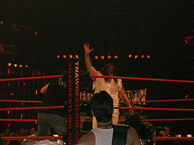 Towards the end of the match Dixie Carter could be seen in the crowd signing autographs and posing for pictures with the Championship Belt. Soon after that the countdown to the show going live started. "5-4-3-2-1" ... then explosions from the pyrotechnics came forth, as well as the capacity crowd ... and then chants of "TNA" were all that could be heard.