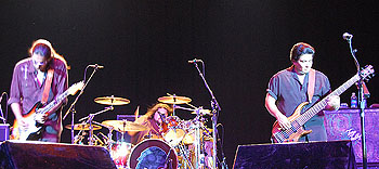 After a brief intermission Los Lonely Boys take the stage. 'I Am The Man To Beat' came first with 'American Idle' following. 'Love in My Veins,' 'Heart Won't Tell A Lie,' then ("A while back we met some people with a couple of children who said, hey these kids are a product of your music. To which I said nooo, that's your product" - bassist Jojo Garza) 'Fly Away' are all next.