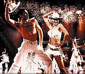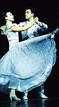 In the next two hours, with a twenty-minute break midway, the show explored way beyond the confines of both the Ballroom and Latin dance styles that it had originally culled from. Included now in the musical festivities were such musical styling as the rumba, samba, cha cha, waltz, jive, jitterbug, swing, mambo, salsa, tango and even quickstep - juxtaposed with street and industrial dance. As the curtain lifted, the two ‘figures’ began their opening waltz routine, the sheer beauty and composed elegance a sight to behold. This was quickly followed by an all out – and extraordinarily colorful - dance rendition to the contemporary cool and sexy beats of the 1999 Touch & Go theme track, ’Would You Like To Dance With Me?’ [actually called ‘Would You …?’], before Angela Teek (’Oh Kay!,’ ‘Joseph/Dream Coat,’ ‘Beehive,’ and ’You’ll Never Know’) makes her first live vocal appearance of the night. Singing the ballad ’Do You Wanna Dance’, it leads directly into the ’Waltz Suite’ [the theme from ‘Carousel.’] This fantasy waltz then allows a gathering of masked male ‘live’ mannequins – the backdrop now lit up like a star-lit night – to take their ladies by the hand, swirling them gracefully.