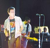The first thing that strikes you about the 2003 incarnation of Pearl Jam is that they look, sound and act like Incubus’ parents! Sure they can sell out two nights at DTE Energy Theatre, and sure their fans are some of the most loyal this side of an hallucinate haze, but from the moment Eddie strides onto stage – bottle of red wine in his right hand – it’s his hair cut that takes the most getting used to! A cross between conformity and homogenization, the non-descript cut has to be the most boring aspect that has encompassed Pearl Jam for many a year!