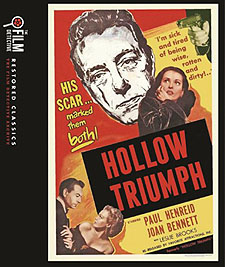 DVD Verdict: If you can buy the premise of 'Hollow Triumph' aka 'The Scar' — a hunted guy finds his exact double and takes over the double's life — the rest follows pretty effectively. Writer Dan Fuchs is much underrated and a prime contributor to Hollywood's noir period. The screenplay is more cynical than usual for the genre. Catch how many times comely secretary Evelyn (Bennett) complains about never expecting anything from life; or the guy talking about people being so self-absorbed they don't even know the color of their wife's eyes; and, of course, there's that desolate ending.