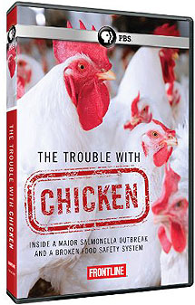 DVD Verdict: Basically put, FRONTLINE investigates the spread of dangerous pathogens in our poultry — and why the food-safety system isn't stopping the threat. watching 'Frontline: The Trouble With Chicken,' I have to say that, and as a meat eater, it certainly put me off eating chicken again! But, funnily enough, it wasn't overly due to the endless scenes of raw chicken found contaminated with Salmonella, or the way the increasing danger posed by some strains of the bacteria were escalating (or what the end result could be to a human eating such chicken), no, it was a more guttural reaction to actually watching the chickens die!