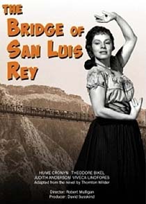 DVD Verdict: This wondrous b/w teleplay is set in the early 1700s in Peru. An old rope bridge over a gorge collapses, killing five persons. Brother Juniper conducts a lengthy investigation of the lives and backgrounds of the five victims. The play follows Juniper’s investigation and examines the lives prior to the accident.