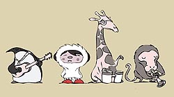 In the artwork for the One eskimO band shot, you all have different characters - penguin, Eskimo, monkey, and a giraffe! Did you have a choice in which ones you wanted to be or will the public make their own decisions? [Jamie] "I think that is what the public will decide, yes. But, each one has already related to us. Kristian, as he was locked away in the studio had the sense of solitude and peacefulness and so became the Eskimo. He then needed more people to join and create the album and the animation. And so all the way through the animation there are characters that as the animation and the music was developing more characters were popping up."